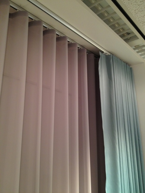 これは生地も素敵ですが、その良さを出しているのがレール。ウェーブのラインが天井までとても綺麗にできています。これは紐で巻く事で開閉します。とても静か!ちなみにスイスで作られています(^.^)