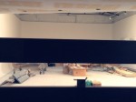 今日はついに雪見障子デザインの間仕切りにクロスが貼られ始めました。